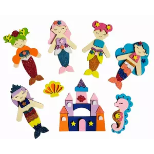 Набір для творчості 3D Аплікація Русалки складається з п`яти русалок , морського коника та замку ,на які потрібно наклеїти ( одягнути) яскраві предмети .