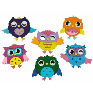 Набір для творчості 3D Аплікації Сови складається з шести совенят , на які потрібно наклеїти ( одягнути) яскраві деталі .