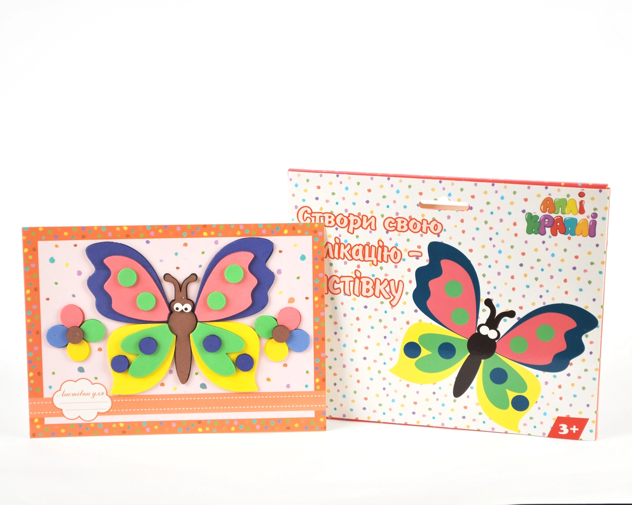 Аплікація-листівка "Метелики" - це дитячий набір в який входить картонна листівка з нанесеним на неї контуром для підклеювання деталей. Також після поклейки композиції з дитиною можна її підписати в спеціальному полі.