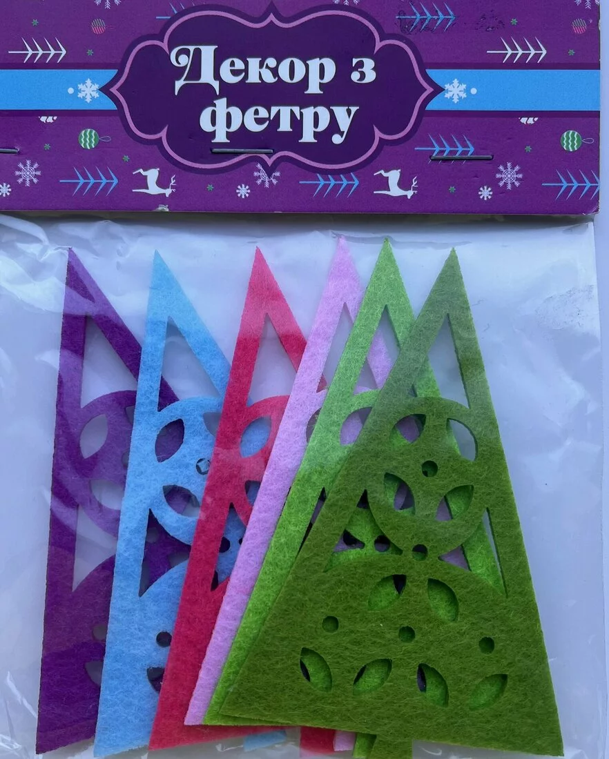 Декор з фетру "Ялинка ажурна" - стане чудовим декором до новорічних свят. В упаковці 6 виробів