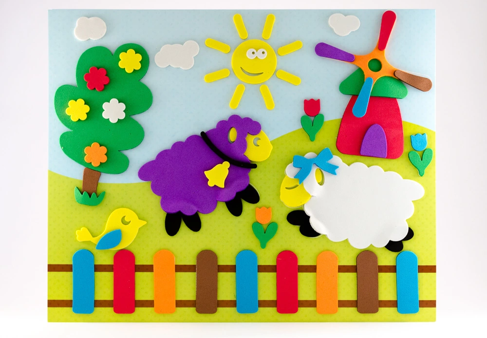 Кожна коробка містить: картонну основу аплікації; маленьку підказку-малюнок готової аплікації; м'які тематичні деталі для виконання аплікації.Вам не знадобляться ножиці та клей, не буде паперових клаптиків у пориві творчого безладу.Вся інструкція на коробці - зніми паперовий захисний шар з деталі та приклей у точне місце.