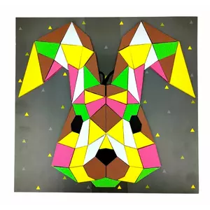 До набору м`яка мозаїка голови входить : картонний планшет з нанесеним контуром , на які потрібно наклеїти деталі різної геометричної форми .