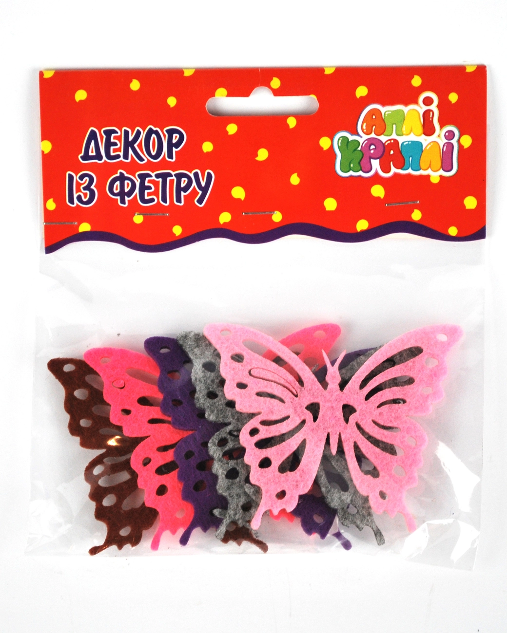 Набір складається з 5-ти м'яких різнокольорових фетрових елементів, які можна використовувати для різних виробів і декорування.