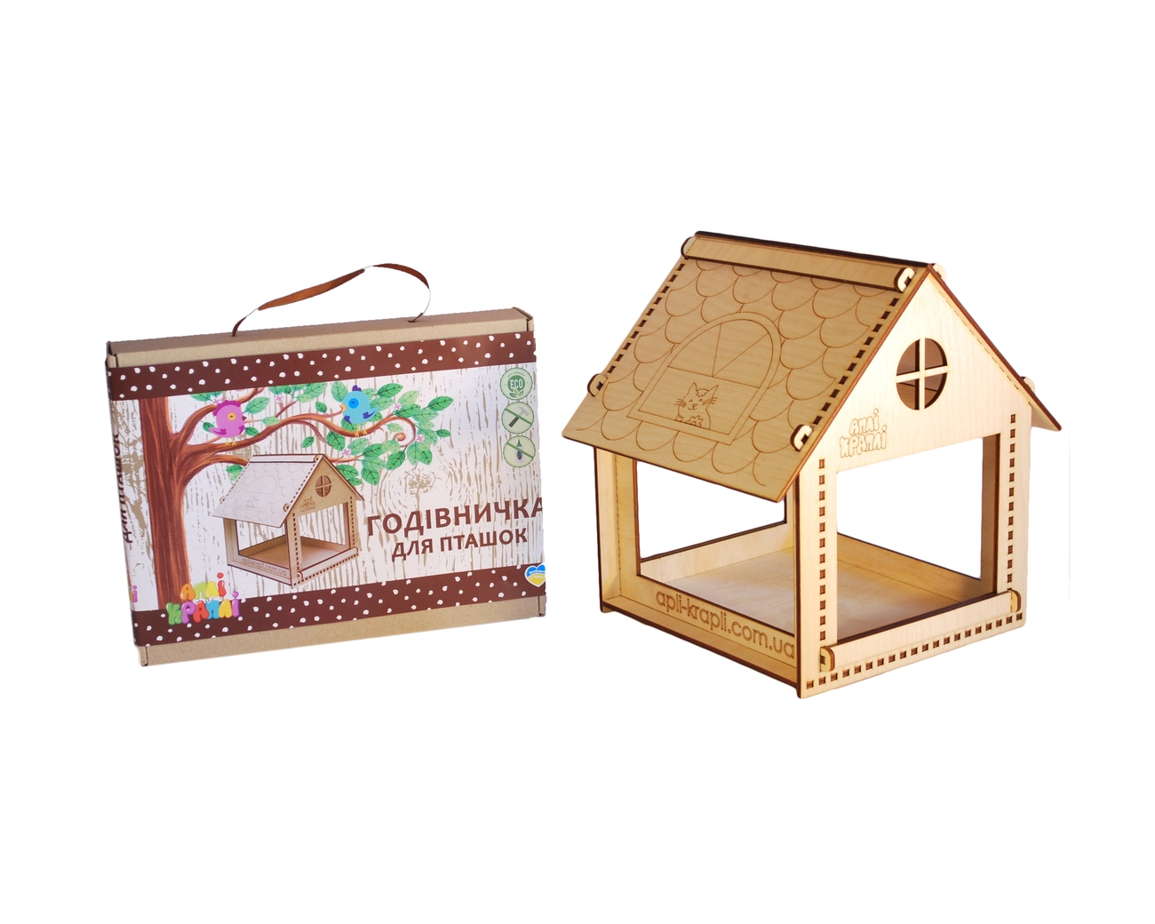Також до складу набору входить акриловий лак і пензлик що дає можливість продовжити термін служби годівниці (використання під наглядом дорослих).